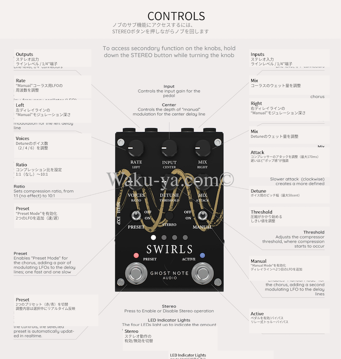 80’sを代表する3種のラックエフェクターが、 3 in 1に集約されたスペシャルなペダル Swirls 。